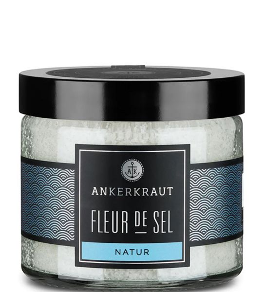 Der französiche Begriff "Fleur de Sel" beschreibt gut, dass es sich nicht einfach um grobkörniges Meersalz handelt, sondern um die dünne Schicht zarter Kristalle, die sich ganz oben auf den Salinen bildet. Diese wird vorsichtig von Hand abgeschöpft. Das Ankerkraut Fleur de Sel wird in mediterranen Salzgärten mit hölzernen Harken gesammelt. Die besondere Struktur der feinen und milden Salzkristalle kommt am Besten beim finalen Salzen am Tisch zur Geltung. Es lässt sich ganz leicht mit den Fingern zerreiben.