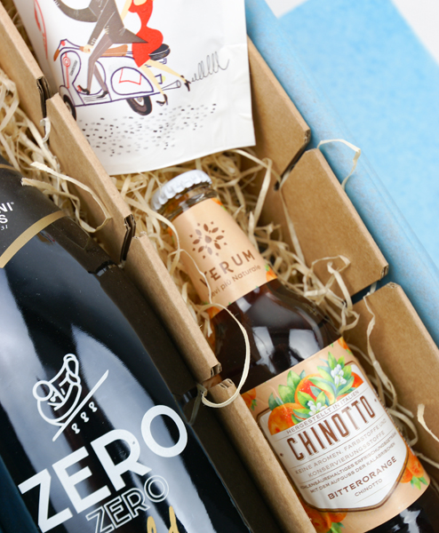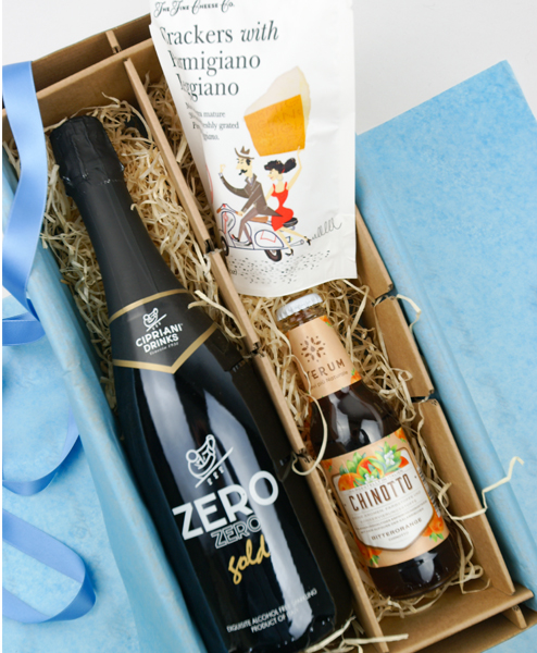 Wir möchten Ihnen das Flair eines Abends in Venedig vermitteln, denn von dort kommt der "Zero Gold" aus dem Hause Cipriani. Angefangen mit "Harry's Bar" steht der Name Cipriani längst als Synonym für erstklassige Küche und italienische Spezialitäten. Auch dieser akloholfreie Sekt passt sehr gut in das hochklassige Sortiment. Die bittersüße Note aus den Chinottorangen im ebenso alkoholfreien Chinotto von Bevipuinaturale macht aus der Kombi einen sorgenfreien Aperitiv im Aperol-Stil. Die Parmesan-Cräcker sind da die perfekte Ergänzung.