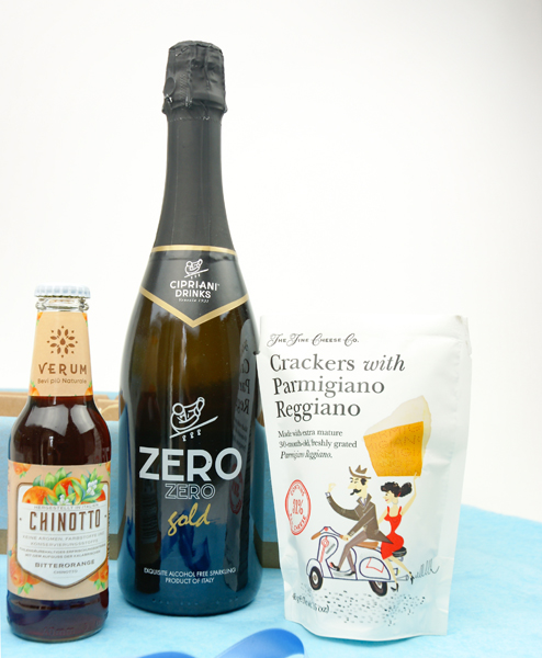 Alkoholfreier Sekt, Chinotto und Parmesancräcker