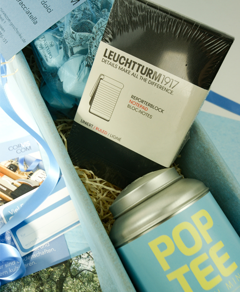 Teetrinken und Abwarten ist nicht so richtig Ihr Stil? Aber mal einen Tee trinken und dabei in Ruhe nachdenken, das hat noch nie geschadet und schon manche gute Idee hervorgebracht.Der erstklassige Bio Tee von POP Tee belebt den Geist mit Ingwer und Ginseng und die Tartufi dolci alla stracciatella sind ein genussvoller Energiespender aus dem Piemont. Der original Reporterblock ist perfekt, um Ihre Gedanken festzuhalten.