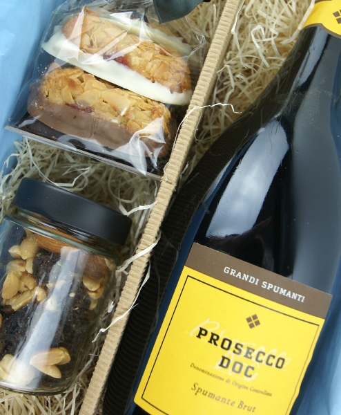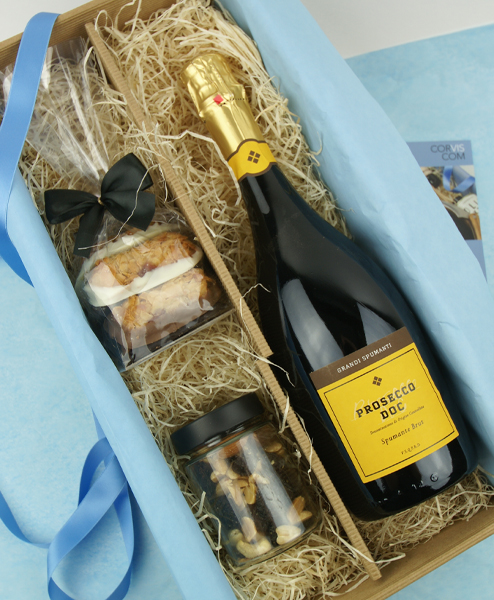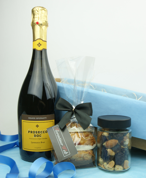 Man muss die Feste feiern, wie sie fallen und mit dieser Geschenkbox möchten wir die Beschenkten in festliche Stimmung bringen. Die handgemachten Florentiner von Florentiner Welt aus Österreich kleiden sich aber nicht nur wie zum Opernball, sondern sind auch ein kulinarisches Feuerwerk. Dazu ist der edle Spumante Brut aus dem Veneto ein standesgemäßer Begleiter, dem die frisch geröstete Frucht-Nussmischung vom Bremer Gewürzhandel nicht nachsteht.