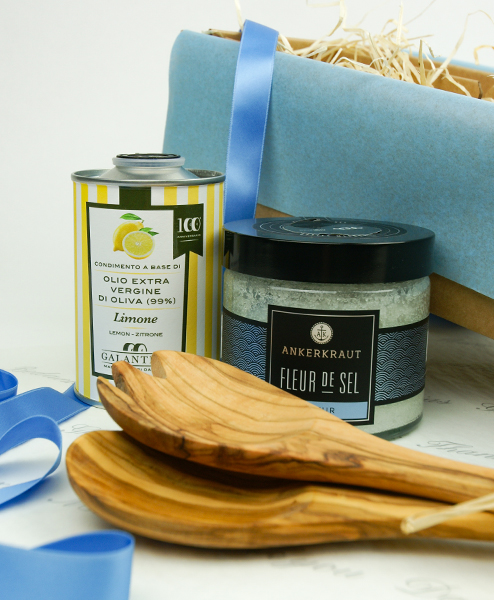 Mit diesem beiden Zutaten zaubern Sie im Handumdrehen einen sommerlichen Salat. Das native Olivenöl extra mit Zitronen duftet so herrlich nach Süden, dass es keine Rolle mehr spielt, welches Wetter gerade draußen ist. Das passende haptische Erlebnis bietet das authentische Salatbesteck aus geschmeidigem Olivenholz. Genießen Sie einfach eine kulinarische Reise in den Sommer.