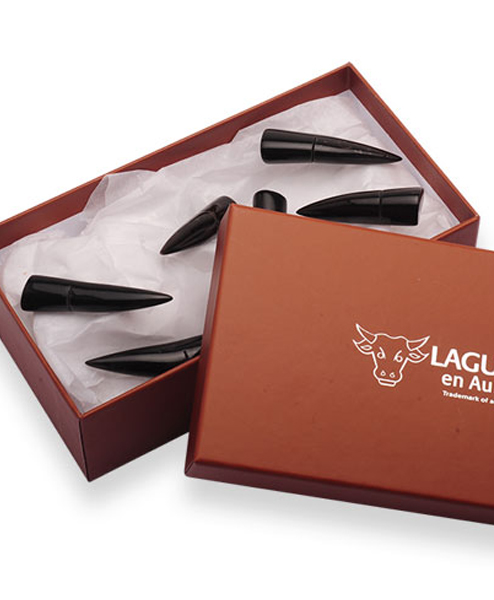 Auch in schwarzem Büffelhorn erhältlich. 6 Stück werden zusammen in einer schönen Geschenkschatulle geliefert. Die perfekte Ergänzung zu jedem edlen Besteck.