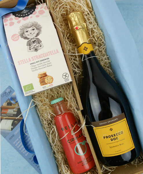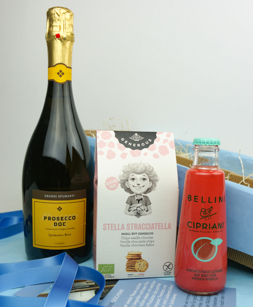 Wir schenken Ihnen kulinarisch einen Sonnenuntergang am Meer. Bellini ist nicht nur ein Getränk, er ist ein Lebensgefühl. Dieser feine Aperitif ohne Alkohol wird aus dem Püree von weißen Pfirsichen gemacht und kommt aus dem Hause Cipriani in Venedig, den Gründern von Harrys Bar. Mit dem edlen Prosecco Brut und ein paar Eiswürfeln wird daraus ein frischer und fruchtiger Cocktail. Die glutenfreien Céline Citron Kekse mit ihrem dezenten aber frischen Zitronengeschmack machen den Genuss perfekt.