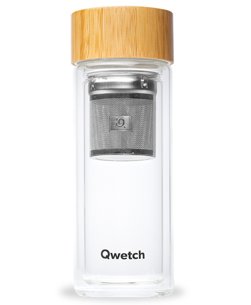 Dieser Tea2Go Qwetch bietet ein Fassungsvermögen von 320 ml und ist aus doppelwandigem Glas mit einem schön gemaserten Bambusdeckel. Durch das hochwertige Material ist der doppelwandige Teebecher geschmacksneutral, äußerst langlebig und beeinträchtigt nicht die Nährwerte und Qualität des Tees. Der Teebecher hält bis zu einer Stunde warm.