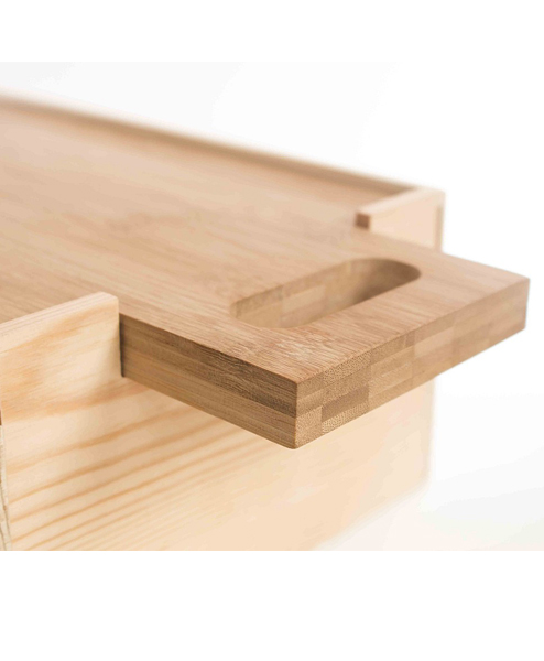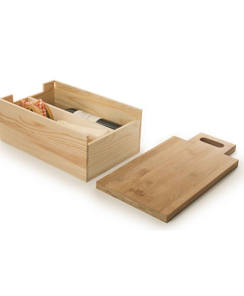 Die Holzbox „Say Cheese" gehört zu einem innovativen Konzept, das vor allem die Nachhaltigkeit von Geschenkverpackungen revolutioniert. In der hochwertigen Holzbox ist Platz für zwei Flaschen Wein oder alle unsere Paketkonzepte, die auch in die 2er Box passen. Der Clou ist der Zusatznutzen, denn der Schiebedeckel ist gleichzeitig ein stabiles Schneidebrett aus mehrlagigem Massivholz.