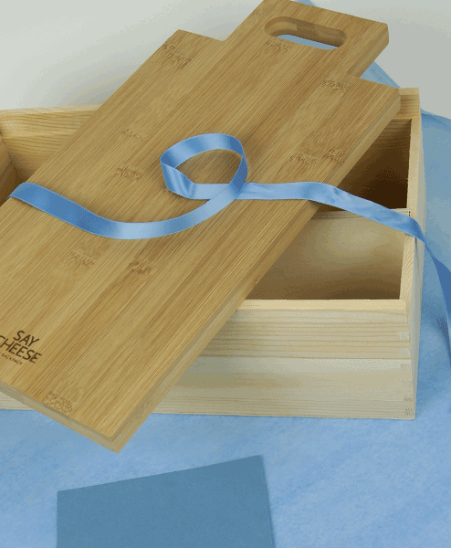 Ein erster Besuch – ein Grund zum Feiern. In diesem Paket haben Sie neben den traditionellen Geschenken Brot und Salz auch noch gleich ein stilvolles Getränk zum Anstoßen. Darüber hinaus ist die Verpackung ein hochwertiges Küchenutensil. Der Deckel der Say Cheese Holzbox ist ein stabiles Schneidebrett aus massivem Holz. Damit wird Ihr Geschenk lange in guter Erinnerung bleiben.
