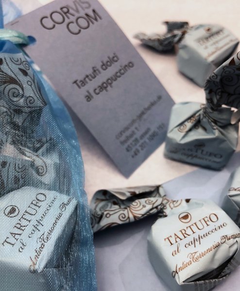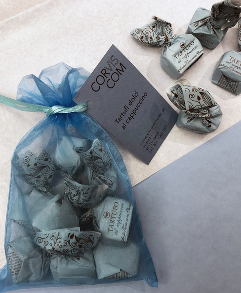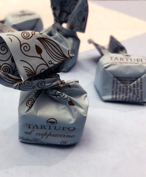 Eine weitere, köstliche Erfindung aus dem Piemont sind die „Tartufi Dolci – süße Trüffel“. Ihr Hauptbestandteil ist die große, runde Piemonteser Haselnuss. Nach traditionellem Rezept entsteht daraus eine Praline mit unnachahmlich weichem Biss. Durch Zugabe von Espresso und Milch erhält die Variante „Cappuccino“ das milchig-herbe Aroma und die hellbraune Farbe der Kaffeespezialität. Mit der feinen Süße vervollkommnen die Tartufi Ihren Kaffeegenuss. Leider nicht kalorien- aber dafür glutenfrei.