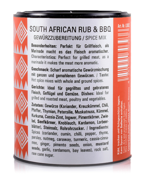 Mit dieser Gewürzmischung geben Sie gegrilltem roten Fleisch aber auch Geflügel und Gemüse einen aromatischen und leicht scharfen Touch. Die gemahlenen und ganzen Gewürze sind eine typisch südafrikanische Mischung und nehmen Sie mit auf die Gewürzreise von World of Taste.